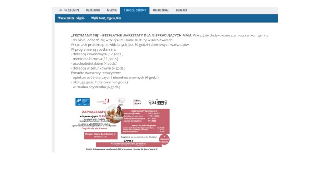 Opublikował informację o naszych warsztatach „TrzyMamy się Razem”