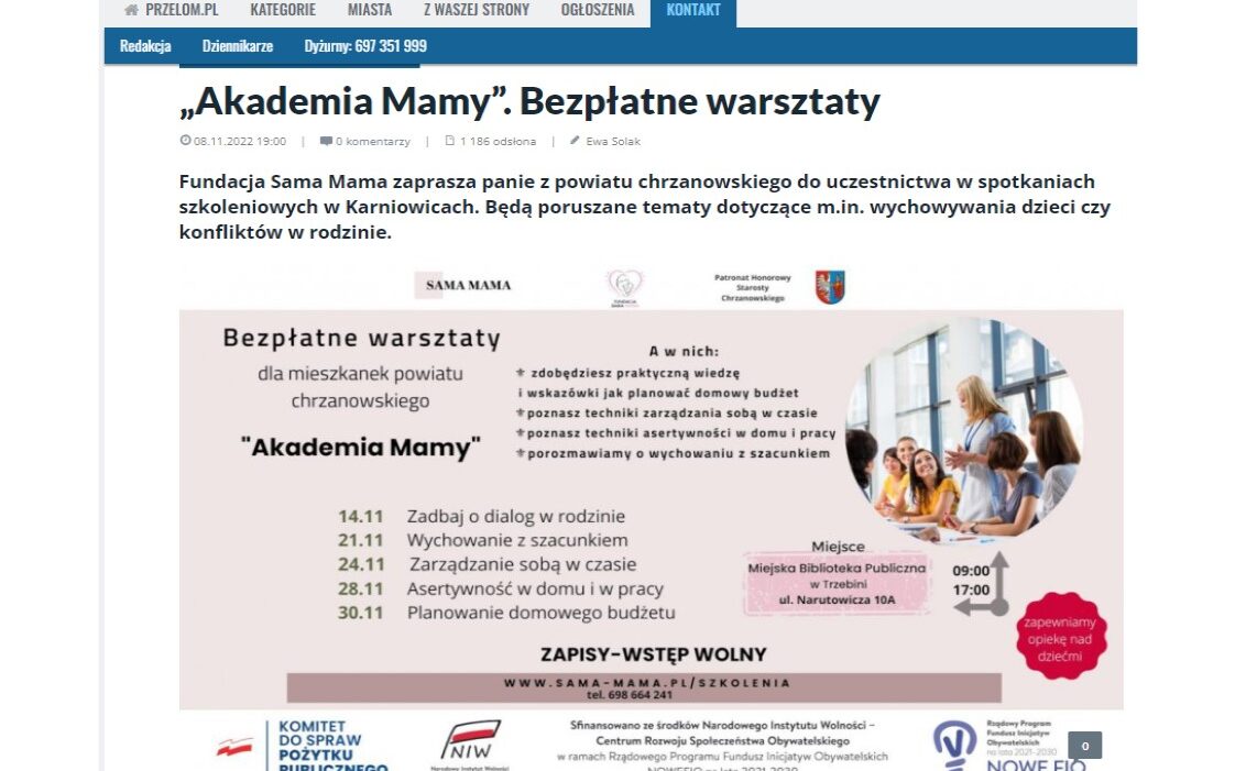Pisał również o naszych warsztatach w ramach Akademii Mamy