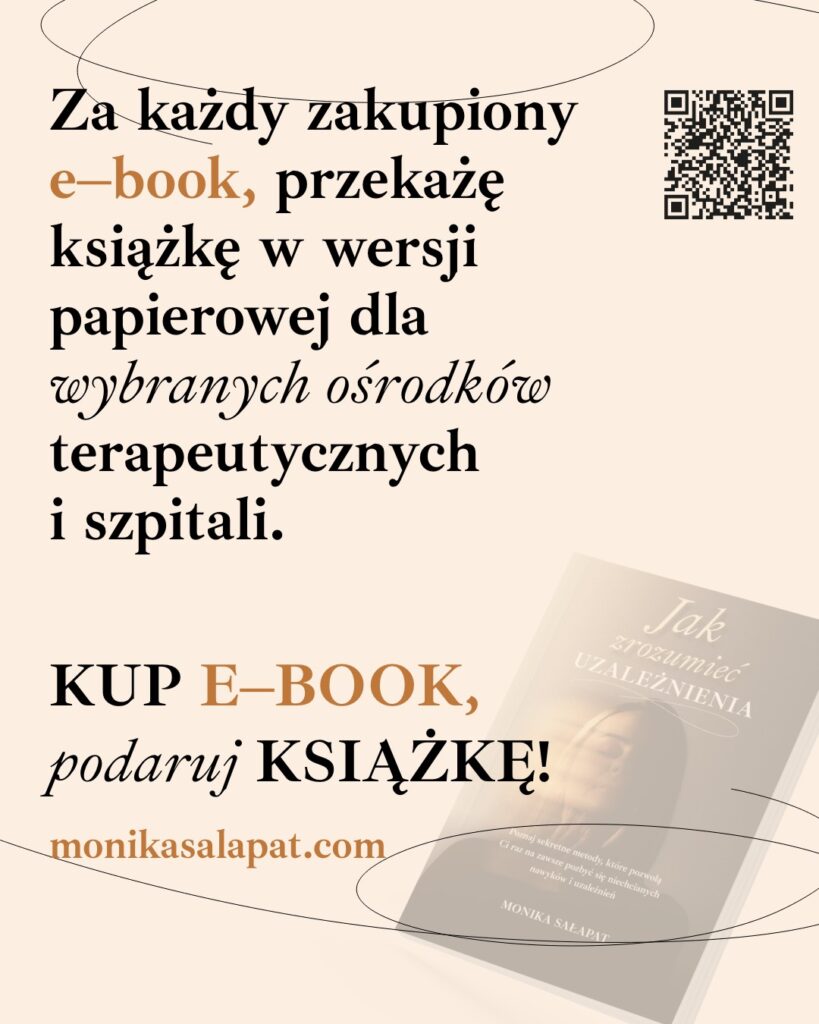 Monika Sałapat, autorka książki Jak zrozumieć uzależnienia, badaczka zjawisk uzależnieniowych, psycholog, wierzy, że zrozumienie jest pierwszym krokiem do zmiany – a książki potrafią być równie terapeutyczne jak słowa drugiego człowieka. Dlatego ruszyła z akcją charytatywną – „Kup eBook – podaruj książkę” – do której warto się przyłączyć.